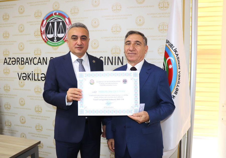 Gündəliyə uyğun olaraq iclasda vəkilliyə qəbulla bağlı məsələlər də müzakirə olunub. İxtisas imtahanlarının yazılı və şifahi mərhələlərini, eləcə də icbari təlim proqramını uğurla başa vuran namizədlərin, həmçinin əvvəllər hakim və ya vəkil işləmiş şəxslərin andiçmə mərasimi keçirilib. Namizədlər vəkil etikası və peşə borcuna sadiq qalacaqlarına dair and içərək Kollegiyanın sıralarına qəbul olunublar. Onlara vəsiqələr təqdim edilib və gələcək fəaliyyətlərində uğurlar arzulanıb.