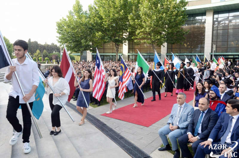 AZƏRTAC xəbər verir ki, tədbir Universitetdə təhsil alan əcnəbi tələbələr tərəfindən təmsil edilən ölkələrin bayraqlarının səhnəyə gətirilməsi və Azərbaycan Respublikasının Dövlət Himninin səsləndirilməsi ilə başlayıb.