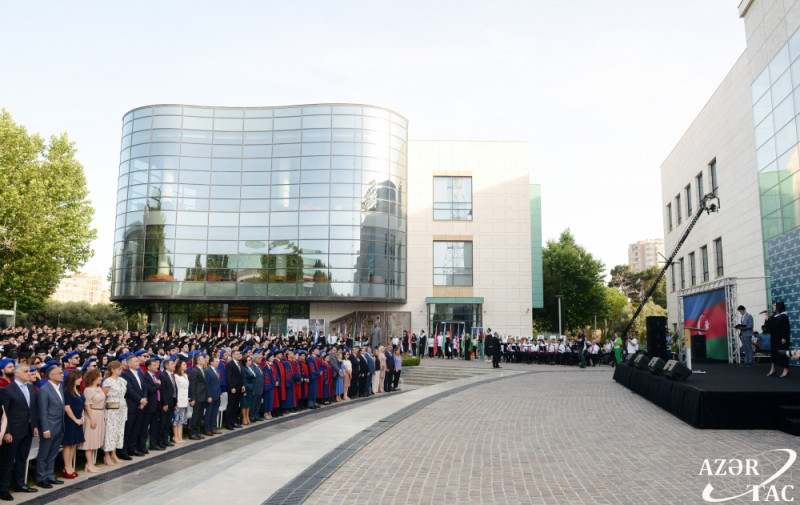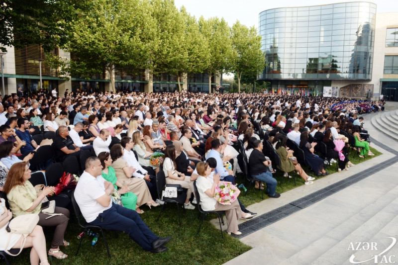 Daha sonra, tədbirin aparıcıları Mənzər Əmirli və Qədir Səfərli builki bakalavr məzunların adından çıxış etmələri üçün İnci Rüstəmovanı və Fatimə Davudlunu, magistr məzunlarını təmsil etməsi üçün isə Murad Malik Aslanovu səhnəyə dəvət ediblər.