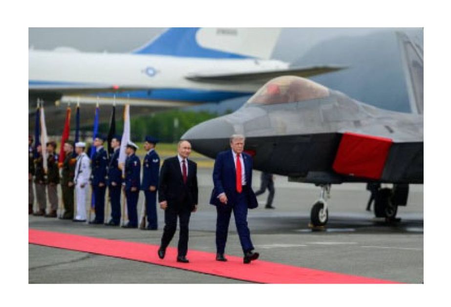 Şəkildə Tramp və Putinin fəxri qarovul dəstəsi ilə birlikdə qırmızı xalçadan keçdiyi görünür.