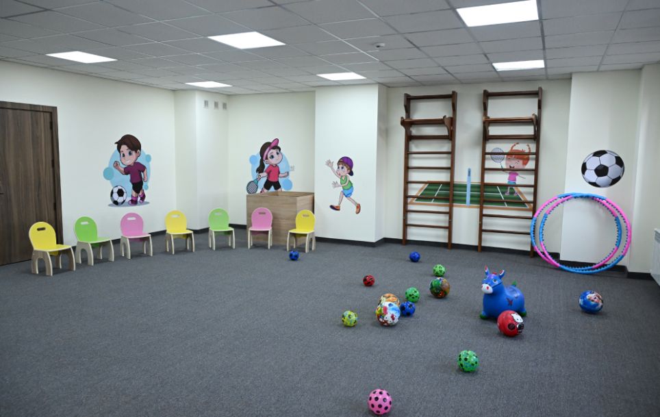 Məktəbəqədər təhsil müəssisəsinin binasında balacaların rahatlığının təmin olunması, həmçinin təlim-tərbiyə prosesinin yüksək səviyyədə aparılması üçün zəruri şərait yaradılıb. Binada oyun və yataq otaqları, musiqi, rəqs və idman zalları var.