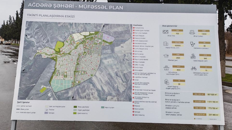 AZƏRTAC xəbər verir ki, Baş planın konseptual sxeminə şəhər mərkəzi, fərdi və azsıxlıqlı yaşayış sahələri, çoxfunksiyalı və ictimai-işgüzar zonalar daxildir. Bundan başqa, şəhərdə terras parkı, çayətrafı bulvar, aqroturizm, sənaye və logistika zonalarının yaradılması planlaşdırılır.