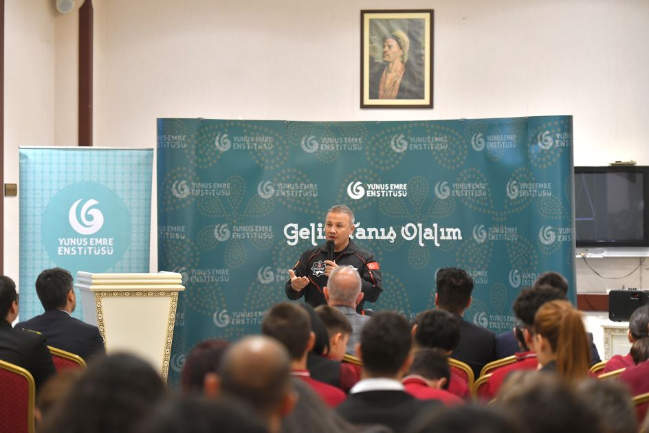 Tədbirdə çıxış edən Yunus Əmrə İnstitutunun koordinatoru Gökhan Seyhan bildirib ki, bu gün yalnız bir qonağı deyil, eyni zamanda bir ilham mənbəyi ilə görüşürük: “Səmaya baxan bir uşağın, bir alim olmaq arzusu ilə yol gedən bir insanın hekayəsi bizimlə bölüşülür. Bu ümid Türkiyədən Azərbaycana, buradan isə bütün Türk dünyasına yayılır. Biz Yunus Əmrə İnstitutu olaraq bu ümidi böyütmək üçün varıq”.