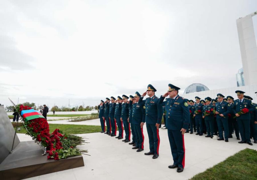 Dövlət Sərhəd Xidmətinin rəhbər heyəti Vətən müharibəsinin beşinci ildönümündə İkinci Fəxri xiyabanı ziyarət edərək ərazi bütövlüyümüzün bərpası, torpaqlarımızın azadlığı uğrunda şəhid olmuş Vətən övladlarının əziz xatirəsini dərin ehtiramla anıb, məzarları üzərinə gül dəstələri düzüb, sonra şanlı Qələbəmizə həsr edilmiş Zəfər parkında Zəfər abidəsi ziyarət ediblər.