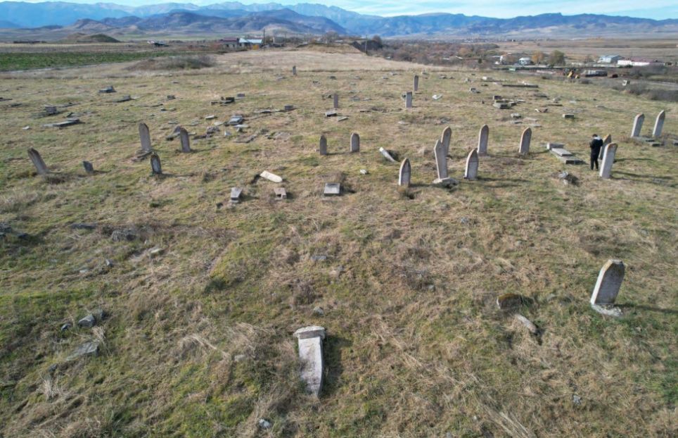 O qeyd edib ki, işğalçılar qəbir baş və sinə daşlarının əksəriyyətini qəbiristanlıq ərazisindən çıxarıb tikinti materialı kimi istifadə edirdilər. Hətta qəbiristanlıqdan kənarda, Ağdam şəhərinin dağıdılmış evlərinin özül qalıqlarında ibarət olan məhəllələrinin birində atılmış qəbir daşlarına rast gəlinmişdi. Qəbiristanlıq ərazisində aşkar edilən sındırılan və bir neçə parçaya bölünən başdaşılar pərakəndə səpələndiyi üçün onların hansı qəbirdən qoparıldığını müəyyən etmək çox çətindir.