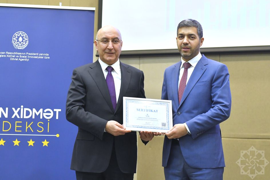 AZƏRTAC xəbər verir ki, tədbirin birinci hissəsində “ASAN xidmət indeksi” üzrə qiymətləndirilmə və “ASAN müraciət” informasiya sisteminin fəaliyyətinin yekunlarına dair qısa təqdimat keçirilib və nəticələr açıqlanıb. Sonra mərkəzi icra hakimiyyəti, yerli icra hakimiyyəti, hüquqi şəxslər və digər büdcə təşkilatları üzrə ən yüksək göstəriciləri olan qurumlar mükafatlandırılıb.