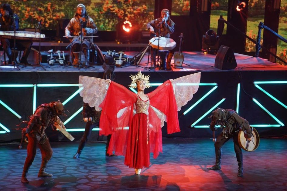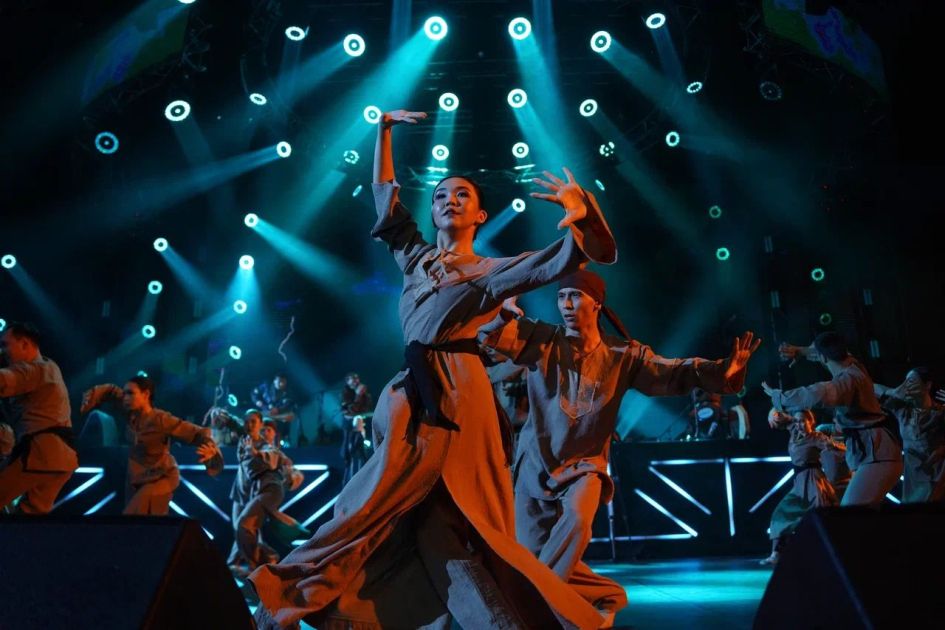 AZƏRTAC xəbər verir ki, səhnədə "Turan" Folklor-Etnoqrafik Ansamblı, "Gulder" Ansamblı, "Saltanat" Dövlət Rəqs Ansamblı və K.Kuanışbayev adına Qazax Milli Musiqili və Dram Teatrının və E.Rəhmədiyev adına Dövlət Akademik Filarmoniyasının kollektivi çıxış ediblər.