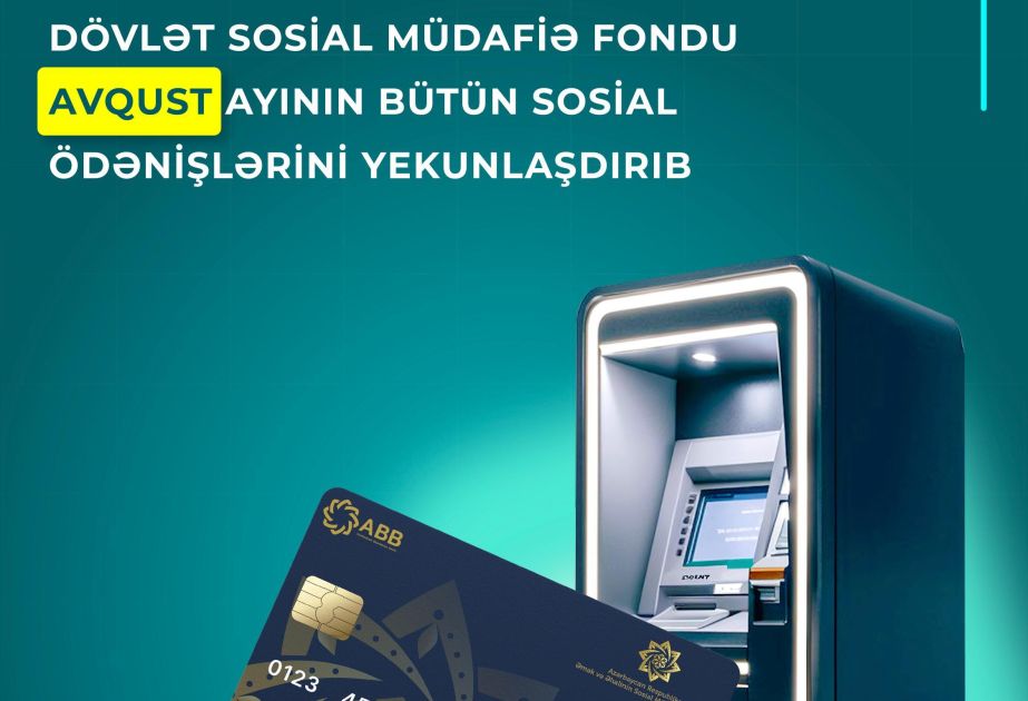 Əmək və Əhalinin Sosial Müdafiəsi Nazirliyinin tabeliyində Dövlət Sosial Müdafiə Fondu tərəfindən avqust ayının bütün sosial ödənişləri başa çatdırılıb.