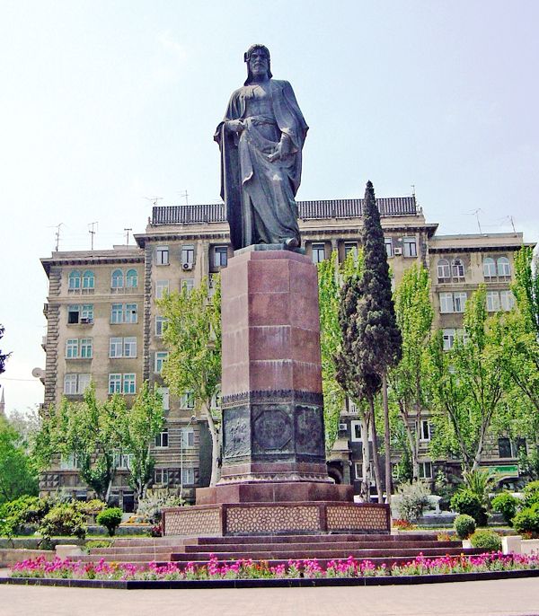 Azərbaycan ədəbiyyatının korifeyi Nizami Gəncəvinin obrazına müraciət etməyi qarşısına məqsəd qoyan F.Əbdürrəhmanov tarixi ikonoqrafik qaynaq olmadan şairin son dərəcə inandırıcı, xarakterik cizgiləri ilə yaddaqalan surətini yaratmağa nail olmuşdur. Qüdrətli heykəltaraş özünün sənətkarlıq məharətini sübut etməklə, həm də mənsub olduğu zəngin mədəniyyət xəzinəsinin istinad mənbəyini tamaşaçılarına işarə etmişdir. N.Gəncəvinin Bakı şəhərinin mərkəzində ucaldılan əzəmətli abidəsi şairin Gəncədəki heykəli kimi özünün bədii xüsusiyyətləri və obrazın yüksək işlənilmə imkanları baxımından heykəltaraşlıq sənətinin ən kamil əsərlərindən sayılır. N.Gəncəvinin fiquru sol ayağı irəliyə doğru hərəkətdə, sağ əli ilə geyimindən yapışmış, sol əlində əlyazmasını bükülü formada tutaraq, nəzərləri uzaqlara dikilmiş və dərin xəyallar aləminə dalmış vəziyyətdə təsvir edilmişdir. Müdrik və Şərq qiyafəli, Nizaminin məğrur duruşunda, başının qürurlu hərəkətində, eləcə də düşüncəli çöhrəsində dövrünün çirkinliklərinə və saray mühitinin dəbdəbəliyinə nəfsi ilə qalib gəldiyi asanlıqla duyulur.