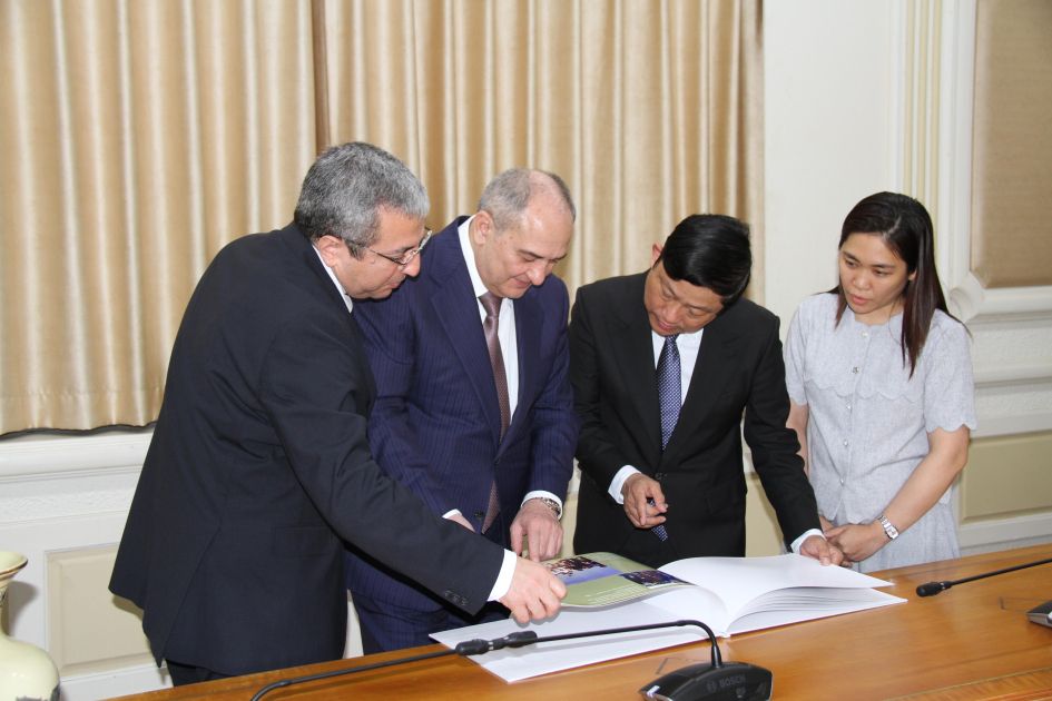 AZƏRTAC xəbər verir ki, Hoşimin Xalq Komitəsinin sədri Vo Van Minh və Hoşimin Şəhər Statistika İdarəsinin direktoru Nquyen Xak Hoanq ilə görüşlərdə bir-birinin maraqlarına hörmətlə yanaşan Azərbaycan ilə Vyetnam arasında qarşılıqlı faydalı əməkdaşlığa əsaslanan strateji tərəfdaşlıq münasibətlərinin uğurla inkişaf etdiyi vurğulanıb.