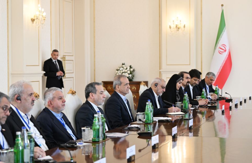 Aprelin 28-də Azərbaycan Respublikasının Prezidenti İlham Əliyevin İran İslam Respublikasının Prezidenti Məsud Pezeşkian ilə geniş tərkibdə görüşü keçirilib.