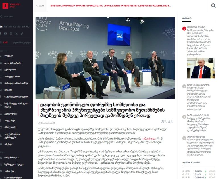 Azərbaycan Respublikasının Prezidenti İlham Əliyevin Davosa səfəri, keçirdiyi görüşlər, “Euronews” televiziyasına müsahibəsi Gürcüstan mətbuatında yaxından izlənilir.