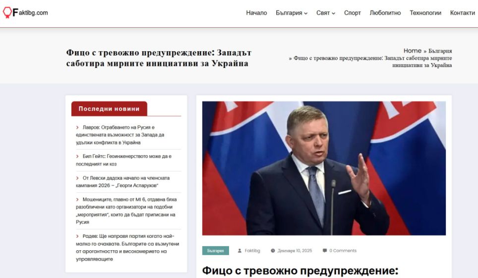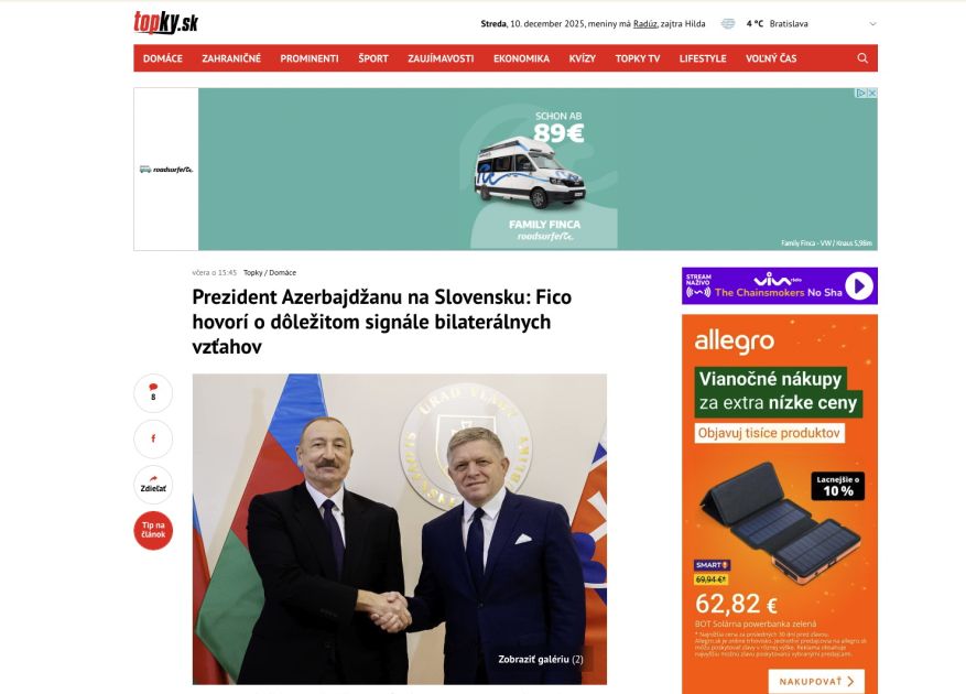 Bolqarıstanın “Factibg.com” saytında dərc olunan yazıda isə Slovakiyanın Baş naziri Robert Fitsonun Azərbaycan Prezidenti İlham Əliyevlə görüşündə iki ölkə arasında qaz tədarükü və müdafiə sənayesi sahələrində əməkdaşlıq imkanlarının müzakirə edildiyi qeyd olunur. Vurğulanır ki, Slovakiya Azərbaycanla hərbi tərəfdaşlığı da gücləndirməyi planlaşdırır.