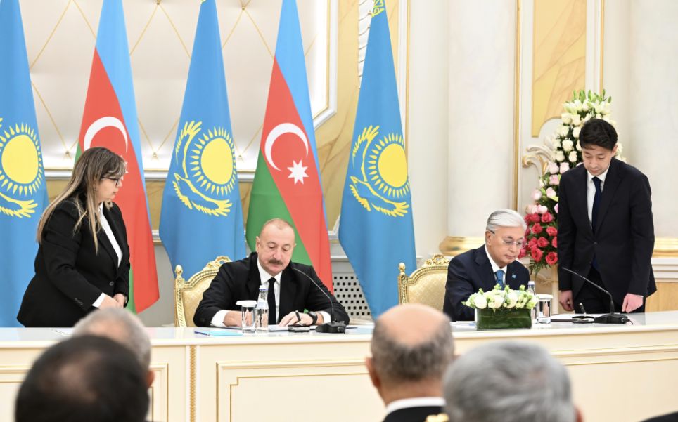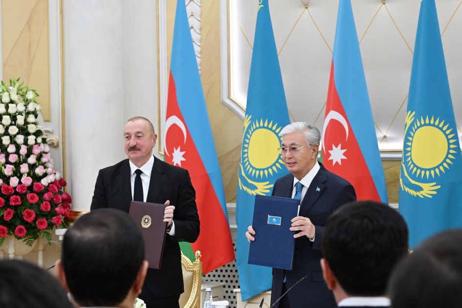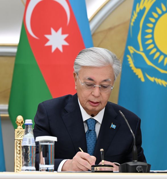 Sonra Azərbaycan-Qazaxıstan sənədləri mübadilə olundu.