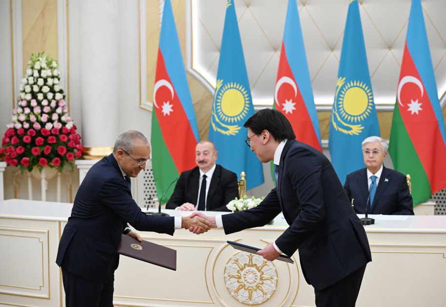 “Azərbaycan Respublikası Hökuməti ilə Qazaxıstan Respublikası Hökuməti arasında sənaye mülkiyyətinin mühafizəsi sahəsində əməkdaşlıq haqqında Saziş”i Azərbaycanın iqtisadiyyat naziri Mikayıl Cabbarov və Qazaxıstanın ədliyyə naziri Yerlan Sersembayev mübadilə etdilər.