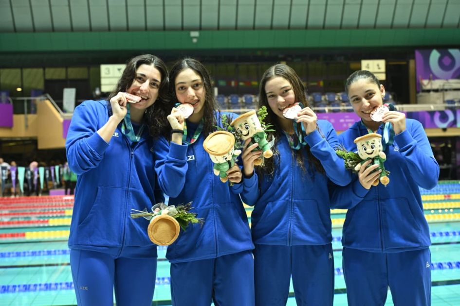 AZƏRTAC xəbər verir ki, yığma üzvləri qadınlar arasında 4x200 metr məsafəyə sərbəst üsulla estafet yarışında üçüncü yeri tutublar.
