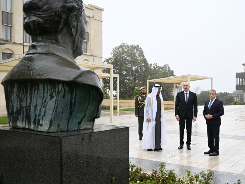 Sentyabrın 16-da Azərbaycan Respublikasının Prezidenti İlham Əliyev və Birləşmiş Ərəb Əmirliklərinin Prezidenti Şeyx Məhəmməd bin Zayed Al Nəhyan Şuşada Azərbaycanın tanınmış şəxsiyyətləri Natəvanın, Bülbülün və Üzeyir Hacıbəylinin erməni işğalçıları tərəfindən güllələnmiş heykəllərinə baxıblar.