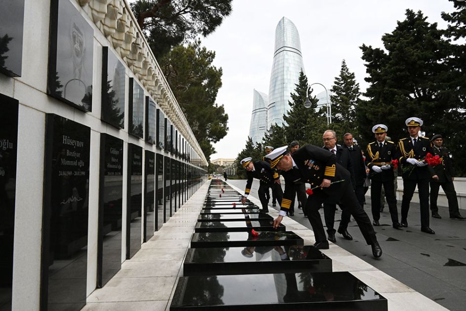 Müdafiə Nazirliyinin mətbuat xidmətindən AZƏRTAC-a verilən məlumata görə, qonaqlar əvvəlcə Zəfər abidəsinin önünə əklil qoyub. Sonra Fəxri xiyabanda Ümummilli Lider Heydər Əliyevin və görkəmli oftalmoloq-alim, akademik Zərifə xanım Əliyevanın məzarları ziyarət olunub, xatirələri dərin hörmət və ehtiramla yad edilib. Onlar, həmçinin Şəhidlər xiyabanında ölkəmizin müstəqilliyi, ərazi bütövlüyü uğrunda mübarizədə canlarından keçmiş qəhrəman Vətən övladlarının məzarlarını və Türk şəhidliyini ziyarət edərək əklil və gül dəstələri düzüblər.