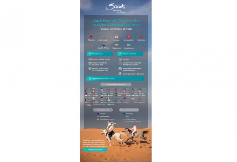 AZƏRTAC SPA agentliyinin məlumatına istinadla xəbər verir ki, ölkələr sırasına Azərbaycan, Gürcüstan, Albaniya, Qırğızıstan, Maldiv adaları, Cənubi Afrika Respublikası, Tacikistan və Özbəkistan daxildir. Bu ölkələrin vətəndaşları Səudiyyə Ərəbistanına səfər etməzdən əvvəl vebsaytdakı rəsmi elektron viza portalı vasitəsilə ziyarətçi vizası üçün müraciət edə bilərlər: visitsaudi.com/en/travel-regulations .