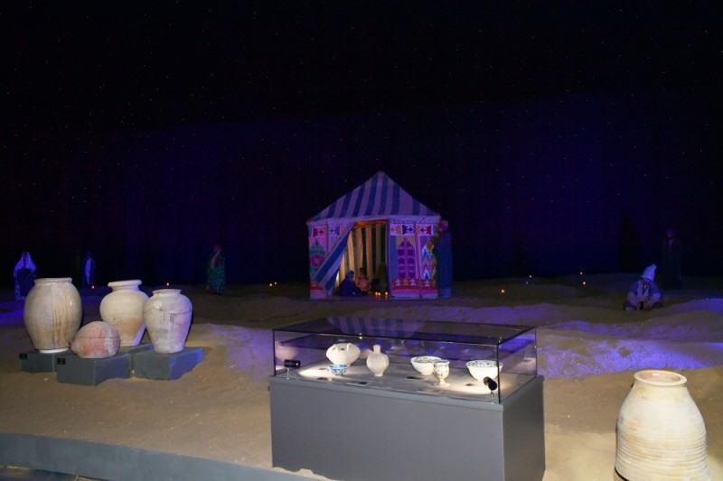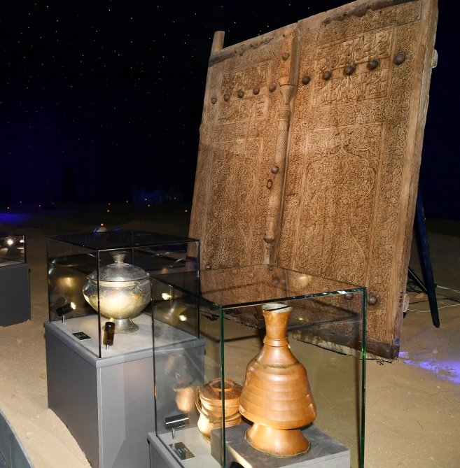 AZƏRTAC xəbər verir ki, fərqli dizaynla hazırlanan sərgidə insan üçün zamanın əhəmiyyəti və əsas həyat ölçülərindən biri olduğu xüsusi tərtibatla verilib. Sərgidə yer alan sərhədsiz qumluqlar sanki keçmiş günlərin sirlərini özündə saxlayır. Sərgi salonunun tavanı elə bir formada tərtib edilib ki, səmaya baxarkən insan özünü sanki ulduzların əhatəsində - qalaktikada hiss edir. Sərgidə ziyarətçilərə hadisələrin düzgün və dolğun çatdırılması üçün obrazları insanlar canlandırır. Burada yaxın sivilizasiyaların fraqmentləri, ustaların və sənətkarların əl işləri təqdim edilir.