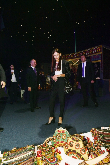 Azərbaycanın birinci xanımı Mehriban Əliyeva Səmərqənddə “Zamanın ilğımları” adlı sərgi ilə tanış olub