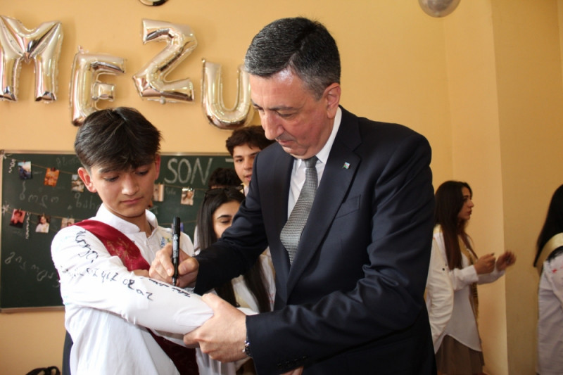 Sonra son zəng çalışıb. Nazirlər Emin Əmrullayev və Giorgi Amilaxvari, səfir Faiq Quliyev şagirdləri son zəng münasibətilə təbrik edib, onlara uğurlar arzulayıblar.