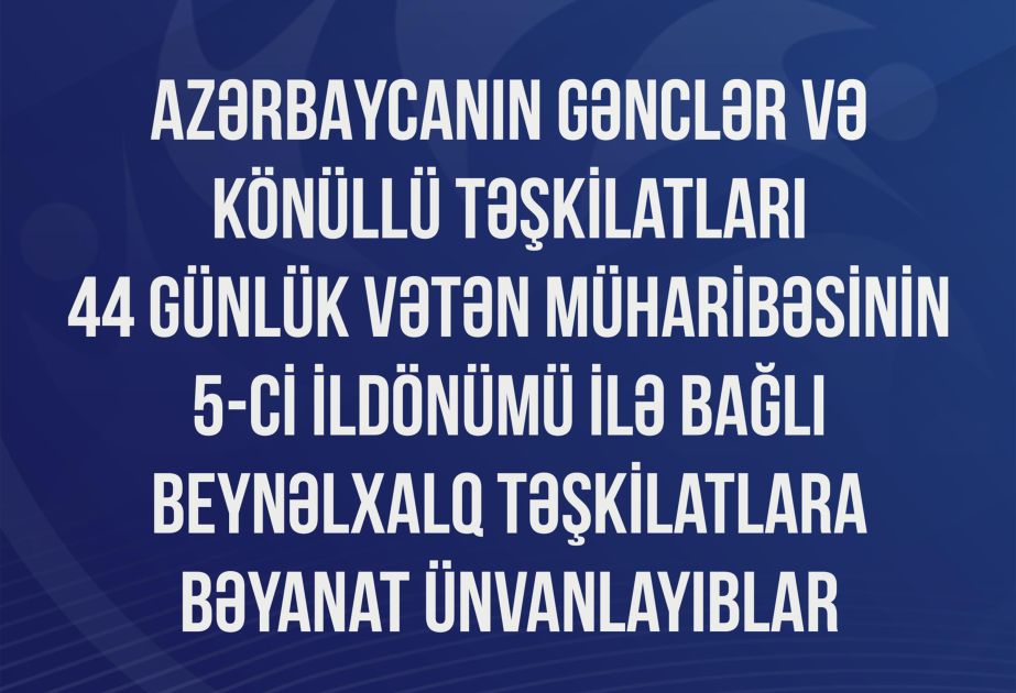 Azərbaycanın gənclər və könüllü təşkilatları 44 günlük Vətən müharibəsinin 5-ci ildönümü ilə bağlı beynəlxalq təşkilatlara bəyanat ünvanlayıblar.