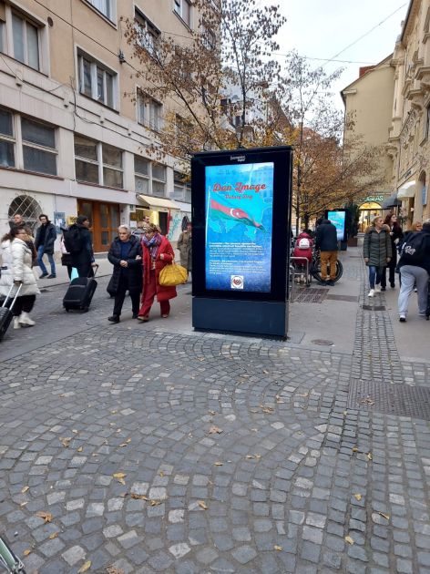 AZƏRTAC xəbər verir ki, bu il Zəfər Günü Sloveniyanın paytaxtı Lyublyana şəhərinin mərkəzində də qeyd olunub. Şəhərin mərkəzində yerləşən rəqəmsal reklam lövhələrində Zəfər Günü ilə bağlı həm sloven, həm də Ingilis dillərində məlumat nümayiş etdirilib.