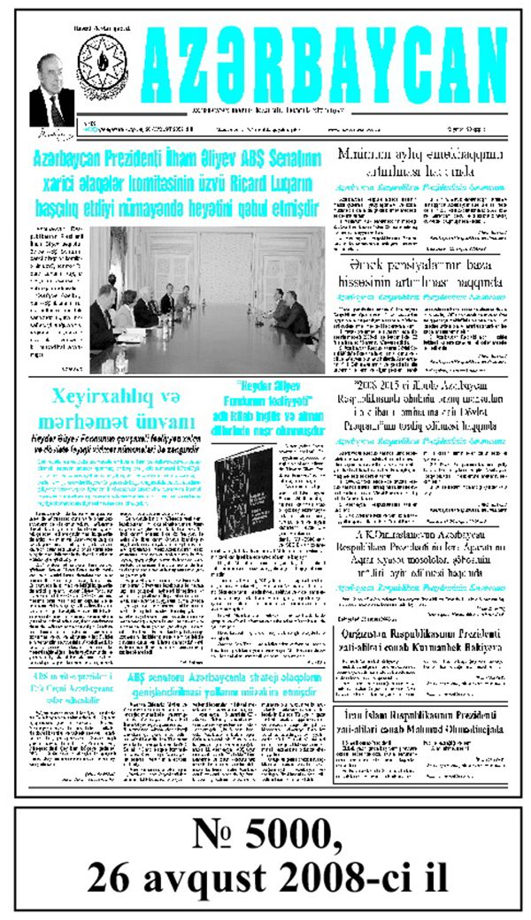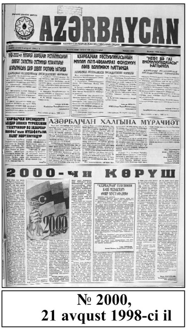 "Azərbaycan" qəzeti bu gün 10.000-ci nömrəsi ilə oxucuların görüşünə gəlib. Azərbaycan Xalq Cümhuriyyətinin rəsmi mətbu orqanı olan "Azərbaycan" qəzetinin birinci nömrəsi Gəncə şəhərində 15 sentyabr 1918-ci ildə işıq üzü görüb. Qəzetin bu nömrəsi iki dildə: Azərbaycan və rus dillərində, 4 səhifə həcmində olub. Qəzetin ardıcıl 4 nömrəsi Gəncədə, 5-ci nömrəsi isə 3 oktyabr 1918-ci ildə Bakıda dərc olunub. 23 aylıq müstəqillik dövründən sonra XI Qızıl Ordu Azərbaycanda hakimiyyət dəyişikliyi etdi. Bununla da "Azərbaycan" qəzeti də, sözün əsl mənasında, işğal edildi.