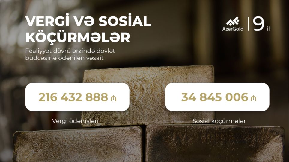 Qeyri-neft sektorunu təmsil edən aparıcı dövlət şirkətlərindən biri olan “AzerGold” QSC ötən dövrdə yerli və xarici bazarlarda 523 min unsiya qızıl və 989 min unsiya gümüşün satışını həyata keçirərək, ölkə iqtisadiyyatına 1 milyard 690 milyon manatdan çox vəsait cəlb edib. Bu məbləğin 1 milyard 592 milyon manatı ixrac, 98 milyon manatı isə yerli satışlardan əldə olunub. Dövlət büdcəsinə 216 milyon 433 min manat vergi, 34 milyon 845 min manat isə sosial ödəniş həyata keçirilib.