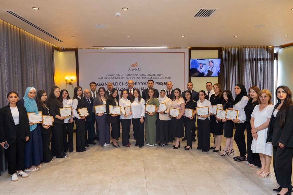 “AzerGold” QSC-nin təşkilatçılığı ilə həyata keçirilən "Şəhid və müharibədə yaralananların ailə üzvlərinin iqtisadi inkişafına dəstək" layihəsi çərçivəsində qənnadçı-şirniyyatçı peşəsi üzrə 2 aylıq intensiv təlimlər başa çatıb.