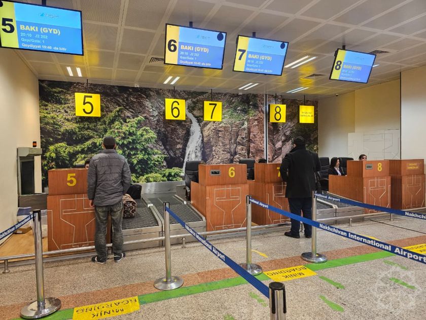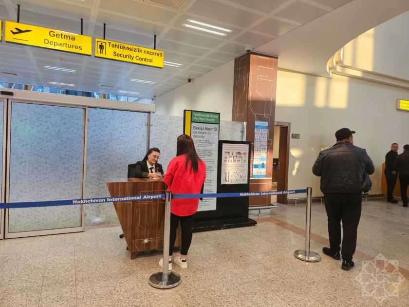 AZƏRTAC-ın bölgə müxbiri xəbər verir ki, hazırda Naxçıvan Beynəlxalq Hava Limanında Naxçıvandan- Bakıya "J2 252" saylı reyslə yola düşən sərnişinlər qeydiyyatdan keçirlər. Bakıdan çıxan reys bir neçə dəqiqədən sonra Naxçıvan aeroportuna eniş edəcək.