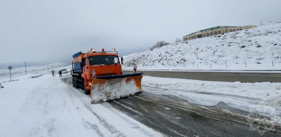 AZƏRTAC-ın bölgə müxbiri xəbər verir ki, Azərbaycan Avtomobil Yolları Dövlət Agentliyinin xüsusi texnikaları ərazidə 24 saat növbəli iş rejimində fəaliyyət göstərərək yolların qardan və buzdan təmizlənməsini təmin edir. Hərəkət istiqamətlərinə uyğun olaraq yolun hər iki tərəfində toplanan qar kütləsi kənarlaşdırılır, nəqliyyat vasitələrinin təhlükəsiz və maneəsiz hərəkəti təmin olunur.