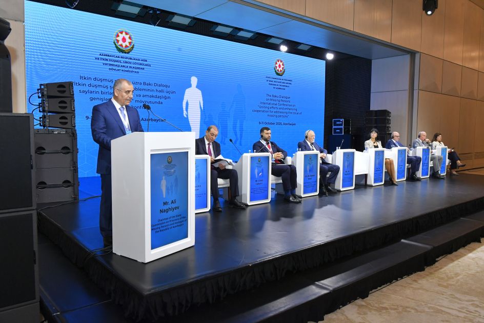 Daha sonra Əli Nağıyev çıxış edərək itkin düşmüş şəxslərlə bağlı artıq üçüncü ildir təşkil olunan beynəlxalq tədbirin məqsəd və əhəmiyyəti barədə məlumat verib. Xidmət rəisi Prezident İlham Əliyevə konfransın keçirilməsində göstərdiyi dəstəyə görə minnətdarlığını bildirərək, itkin düşmüş vətəndaşlarımızın taleyinin aydınlaşdırılması məsələsində dövlətimizin başçısının qətiyyətli və prinsipial mövqeyini qeyd edib. Hazırda Dövlət Komissiyasında 3 min 990 nəfərin itkin şəxs kimi qeydiyyata alındığını, bu vaxtadək işğaldan azad edilmiş ərazilərdə aparılmış qazıntılar zamanı aşkarlanmış 29 kütləvi məzarlıqdan 218 şəxsə aid olduğu ehtimal edilən meyit qalıqlarının müəyyən olunaraq ekshumasiya edildiyini vurğulayan Dövlət Komissiyasının sədri itkin düşmüş şəxslərdən artıq 187 nəfərinin şəxsiyyətinin eyniləşdirilərək ailələrinə təhvil verildiyini, habelə axtarış-qazıntı işləri nəticəsində Ağdərə rayonunun Ballıqaya kəndi ərazisində növbəti kütləvi məzarlığın aşkarlandığını diqqətə çatdırıb. O, 2025-ci il avqustun 8-də Amerika Birləşmiş Ştatlarının paytaxtı Vaşinqton şəhərində paraflanmış “Azərbaycan Respublikası və Ermənistan Respublikası arasında sülhün və dövlətlərarası münasibətlərin təsis olunması haqqında Saziş” layihəsinin 9-cu maddəsinin itkin şəxslərin taleyinin müəyyən edilməsi sahəsində qarşılıqlı fəaliyyətin həyata keçirilməsini nəzərdə tutduğunu, Azərbaycanın və Ermənistanın aidiyyəti dövlət komissiyaları arasında son vaxtlarda mütəmadi əsasda davam edən təmasların, həmçinin müvafiq beynəlxalq qurumlarla əməkdaşlığın genişləndirilməsinin bu işə töhfə vərəcəyinə ümidvar olduğunu deyib.