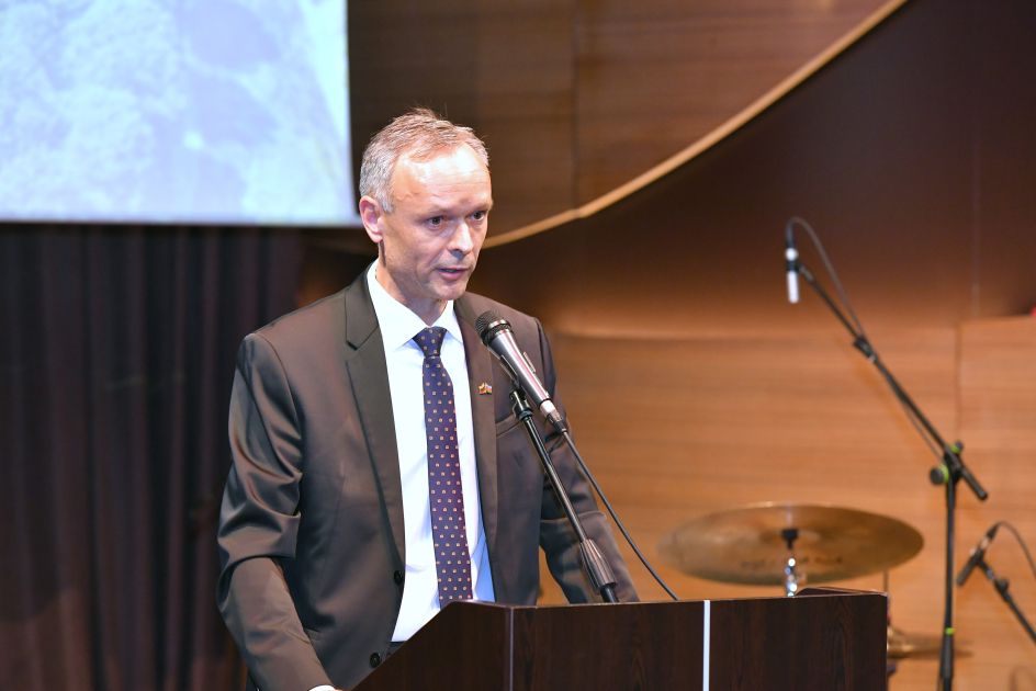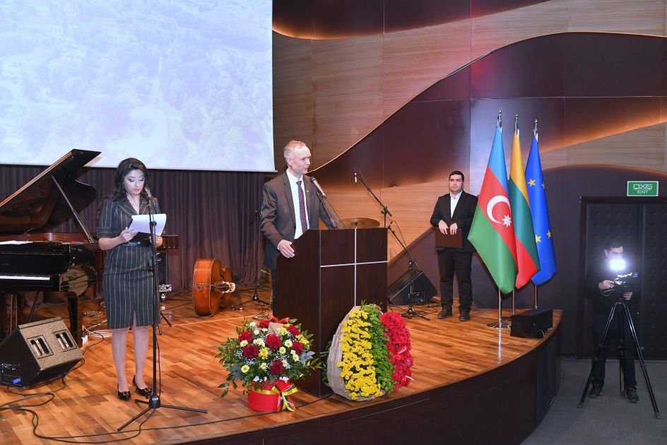 Litvanın Azərbaycandakı səfiri Kestutis Vaşkeleviçus çıxış edərək, Litva dövlətçiliyinin 1918-ci ildə xalqın möhkəm iradəsi və istiqlal uğrunda aparılan qəhrəmanlıq mübarizəsi nəticəsində bərpa olunduğunu vurğulayıb. Bildirib ki, ortaq tarixi təcrübələr Litva və Azərbaycan xalqlarını daha da yaxınlaşdırır, güclü həmrəylik bağlarının formalaşmasına şərait yaradır.