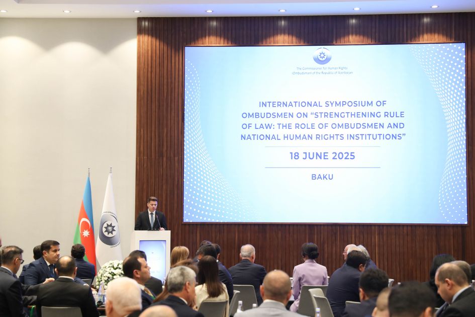Azərbaycan Respublikasının insan hüquqları üzrə müvəkkilinin (ombudsmanın) təşəbbüsü ilə Bakıda “Konstitusiya və Suverenlik İli” və 18 İyun – Azərbaycan Respublikasında İnsan Hüquqları Gününə həsr olunmuş “Qanunun aliliyinin gücləndirilməsi: ombudsmanların və milli insan hüquqları institutlarının rolu” mövzusunda Ombudsmanların Beynəlxalq Simpoziumu keçirilib.