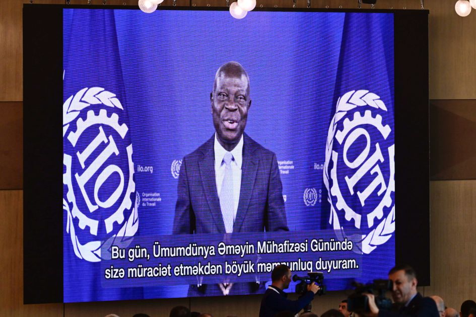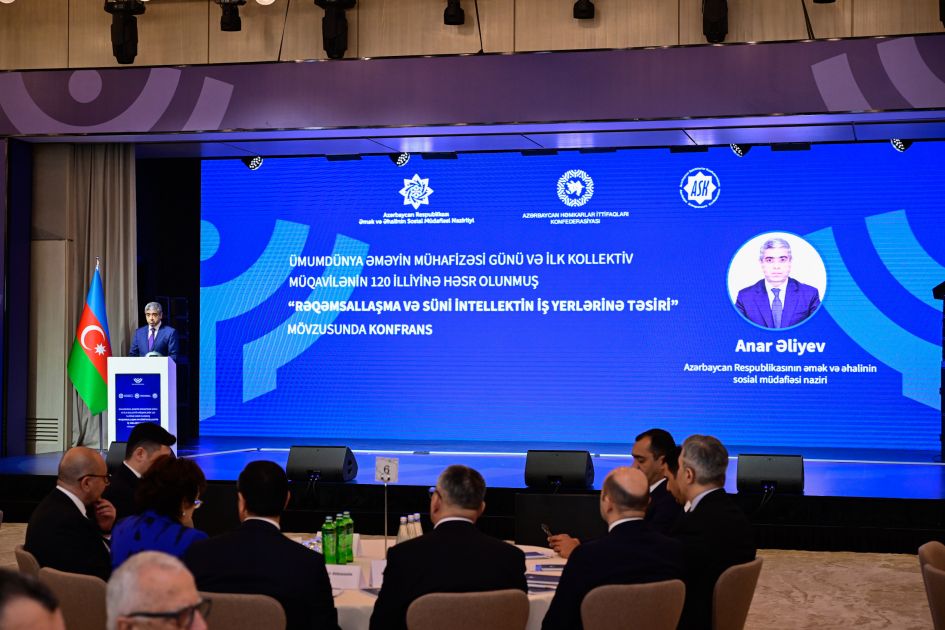 Bakıda, Gülüstan sarayında Ümumdünya Əməyin Mühafizəsi Günü və ilk kollektiv müqavilənin 120 illiyinə həsr olunmuş "Rəqəmsallaşma və süni intellektin iş yerlərinə təsiri" mövzusunda konfrans keçirilir.
