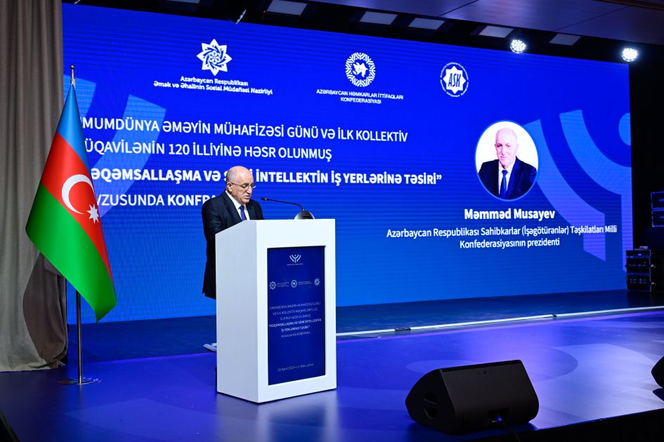 Aprelin 28-də Bakıda, Gülüstan sarayında Ümumdünya Əməyin Mühafizəsi Günü və ilk kollektiv müqavilənin 120 illiyinə həsr olunmuş "Rəqəmsallaşma və süni intellektin iş yerlərinə təsiri" mövzusunda konfrans keçirilib.