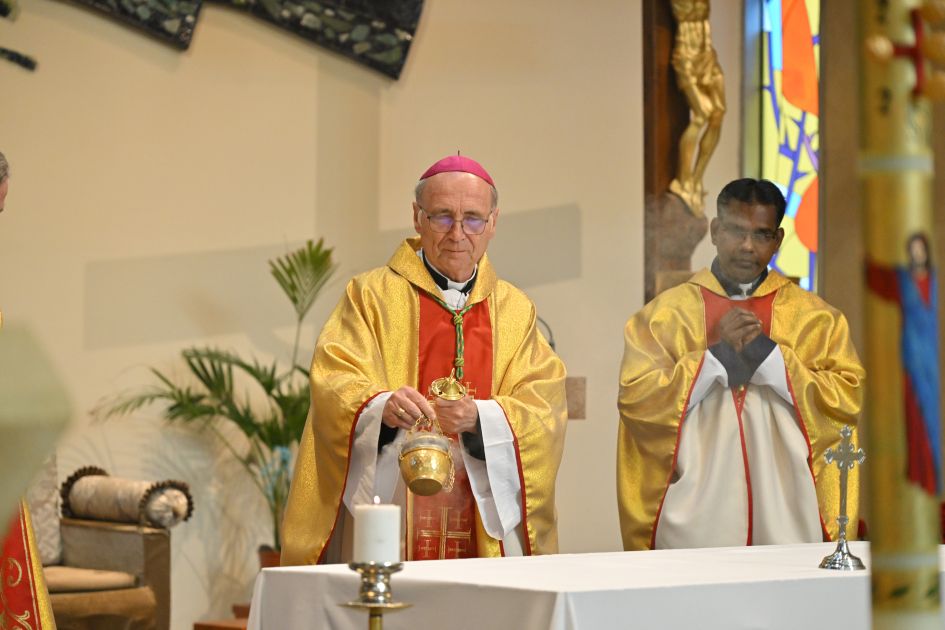 Yepiskop Vladimir Fekete ayin zamanı ibadət edənlərə mərhum pontifikin həyatı və xidmətləri haqqında moizə ilə müraciət edib.