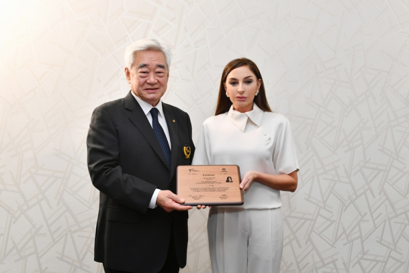 Çunqvon Çu birinci xanım Mehriban Əliyevaya 8-ci dan Fəxri Qara kəmər və sertifikatını təqdim etdi.