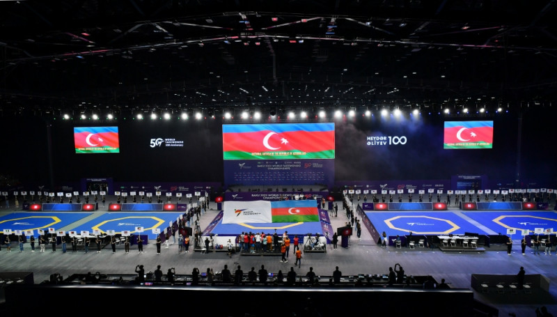 Qeyd edək ki, Ulu Öndər Heydər Əliyevin anadan olmasının 100 illik yubileyinə və Dünya Taekvondo Federasiyasının 50 illiyinə təsadüf edən çempionat “Öz gücünü alovlandır” şüarı altında təşkil olunub. İyunun 4-dək “Baku Crystal Hall”da keçiriləcək 26-cı dünya çempionatında 145 ölkədən 949 taekvondoçu 16 çəki dərəcəsində mübarizəyə qoşulub. Dünya çempionu olacaq idmançı aktivinə 140 reytinq xalı əlavə edəcək.
