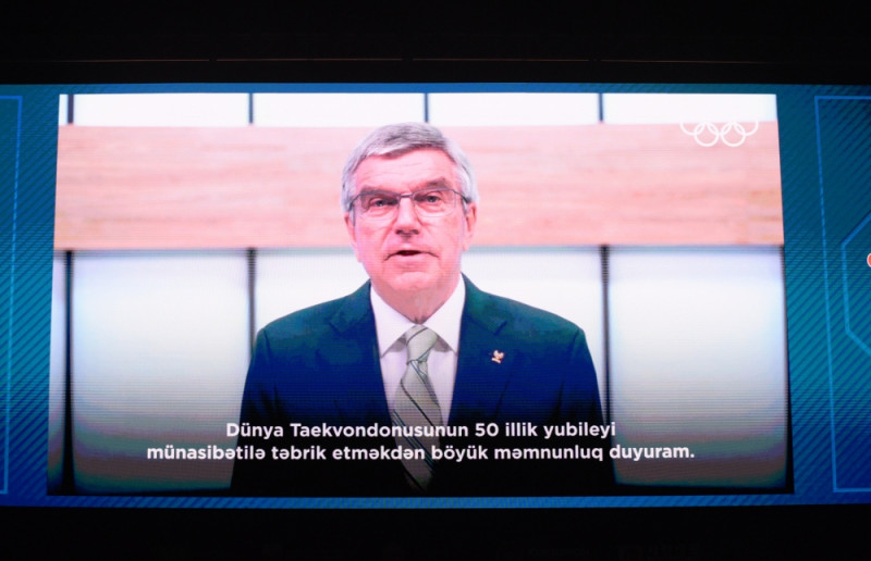 Beynəlxalq Olimpiya Komitəsinin prezidenti Tomas Bax videomüraciətində 50 il əvvəl 17 üzv assosiasiya ilə fəaliyyətə başlayan Dünya Taekvondo Federasiyasının hazırda 213 üzvü əhatə edərək dünyanın ən böyük idman federasiyalarından birinə çevrildiyini dedi. Taekvondonun 2000-ci ildən Olimpiya idman növü olduğunu vurğulayan T.Bax qurumun ötən müddətdə Çunqvon Çunun rəhbərliyi ilə sürətli inkişaf yolu keçərək, həm taekvondonu, həm də idman dəyərlərini müvəffəqiyyətlə təbliğ etdiyini bildirdi. O, Taekvondo Humanitar Fondunun da dünyada qaçqınların idmana cəlb olunmasında mühüm rol oynadığını dedi, federasiyanın Beynəlxalq Olimpiya Komitəsi ilə birlikdə Dayanıqlı İnkişaf Məqsədlərinin həyata keçirilməsinə sanballı töhfələr verdiyini diqqətə çatdırdı.