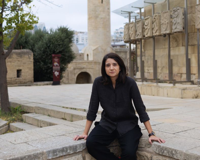 Şirvanşahlar Sarayı Kompleksində “Şeh. Heç vaxt olmayan səhər” adlı sərgidə (31 oktyabr-2 noyabr) rəssam Vüsalə Ağarəziyeva Şirvanşahlar Sarayını gecə ilə sübh arasındakı o incə, düşüncəli məqama çevrilən kontemplativ bir məkana bənzədir.