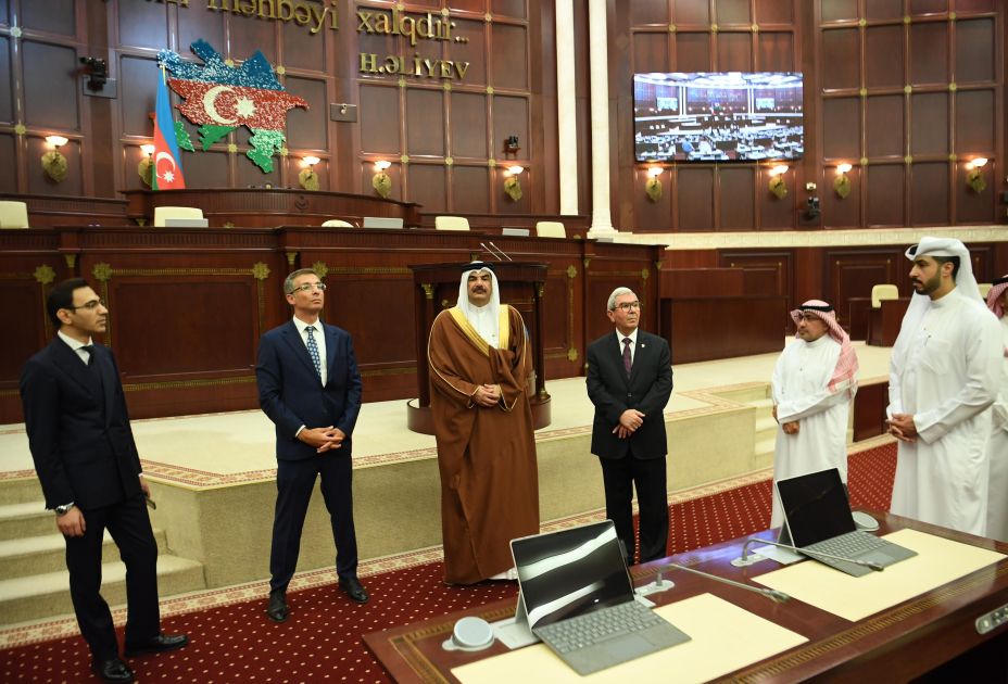 Bəhreyn Krallığının nümayəndə heyətinin üzvləri Milli Məclisdə olarkən parlamentin inzibati binası ilə tanış olublar.