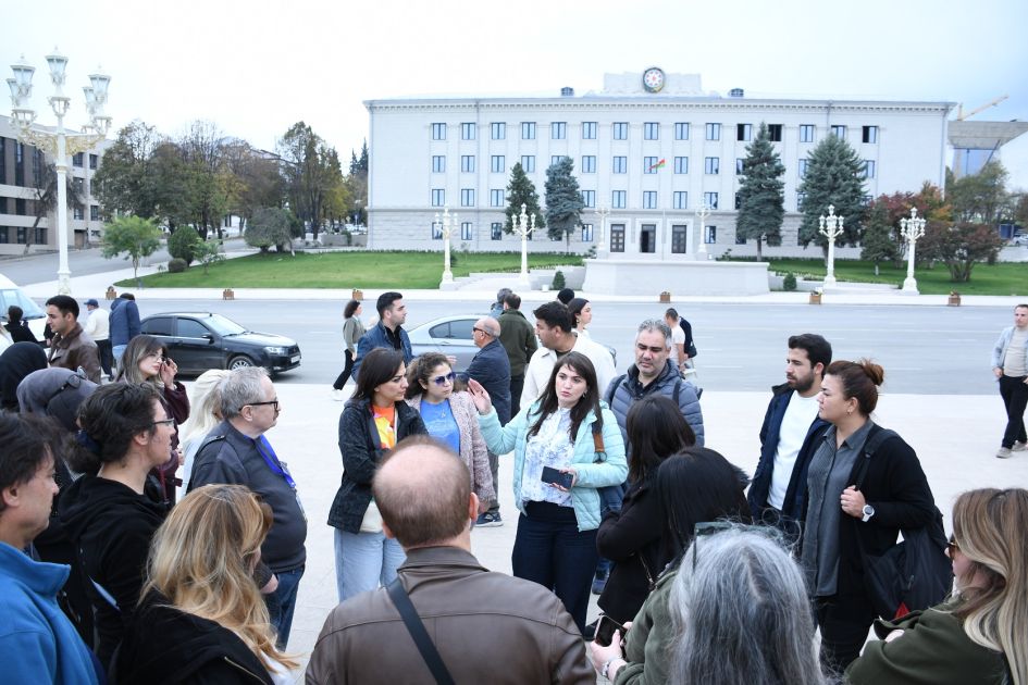 Gəzinti zamanı qonaqlara işğal dönəmində mədəniyyət abidələrimizə ermənilər tərəfindən vurulan ziyan, qədim artefaktlarımızın saxtalaşdırılması barədə də məlumat verilib. Bildirilib ki, şəhər işğaldan azad edildikdən sonra burada genişmiqyaslı bərpa-quruculuq işlərinə başlanılıb. İnfrastrukturun qurulması ilə yanaşı, şəhərin əsl simasının, tarixi və mədəniyyət abidələrinin bərpasına start verilib. Qeyd olunub ki, tarixi, dini və memarlıq abidələrinin bərpa və yenidən qurulmasında Heydər Əliyev Fondu yaxından iştirak edir.