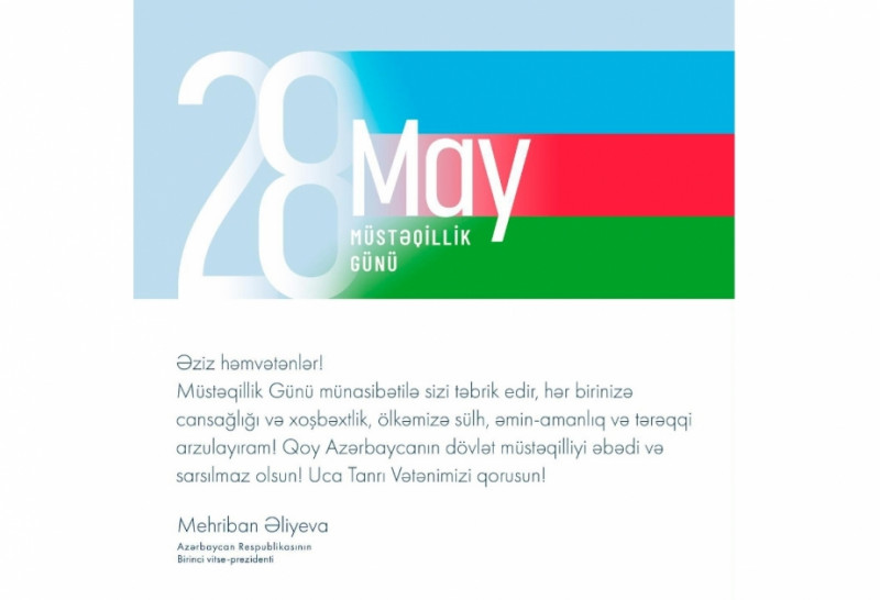 Azərbaycan Respublikasının Birinci vitse-prezidenti Mehriban Əliyeva rəsmi instaqram səhifəsində 28 May – Müstəqillik Günü ilə bağlı paylaşım edib.
