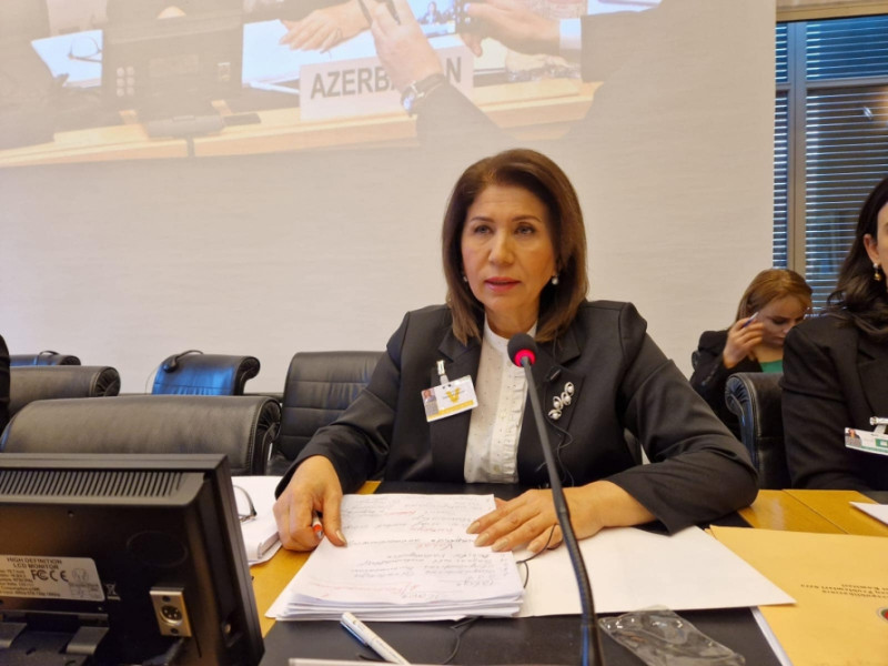 AZƏRTAC xəbər verir ki, sessiyada Ailə, Qadın və Uşaq Problemləri üzrə Dövlət Komitəsinin sədri Bahar Muradovanın rəhbərlik etdiyi nümayəndə heyəti tərəfindən Konvensiya üzrə 7-10-cu klasterlər və Fakültətiv protokollar üzrə hesabat təqdim olunub.