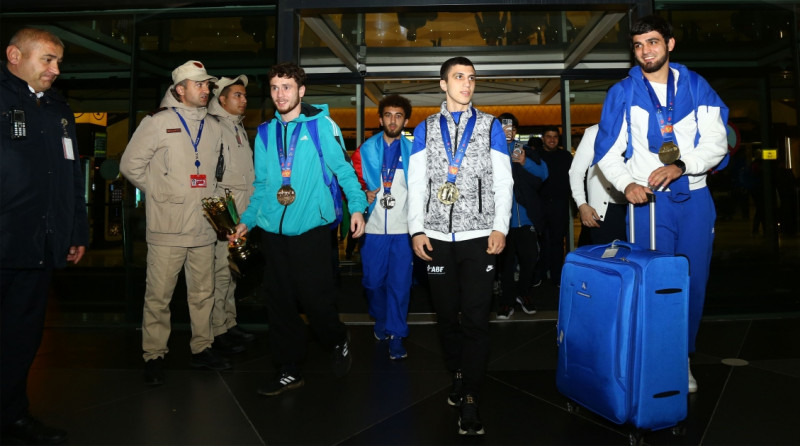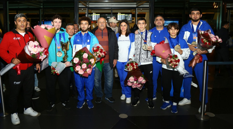 AZƏRTAC xəbər verir ki, Heydər Əliyev Beynəlxalq Aeroportunda idmançıların qarşılanma mərasimi olub.