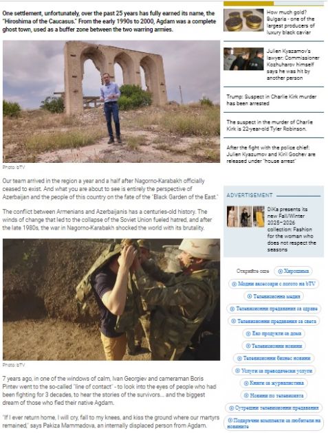 Bolqarıstanın bTV televiziya kanalı Qarabağ mövzusunda hazırladığı xüsusi reportajında Ağdamı “Qafqazın Xirosiması” adlandıraraq bölgədə barışıq və bərpa proseslərinin çətinliklərini təhlil edib.