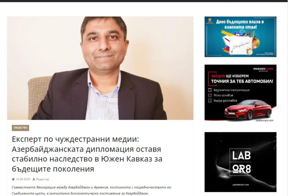 Bolqarıstanın xəbər portalı: Azərbaycan diplomatiyası gələcək nəsillərə sabit Cənubi Qafqaz mirası qoyur
